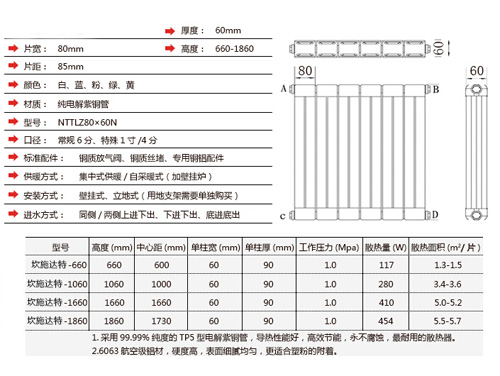 銅鋁復(fù)合雙水道家用114x60散熱器