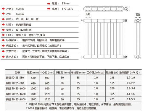 銅鋁復合50x85散熱器